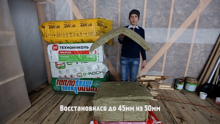 Базальт от Технониколь, выжимали не сильно, без скручивания. После чуть восстановился. Если бы сдавили сильнее, был бы как Экоролл.