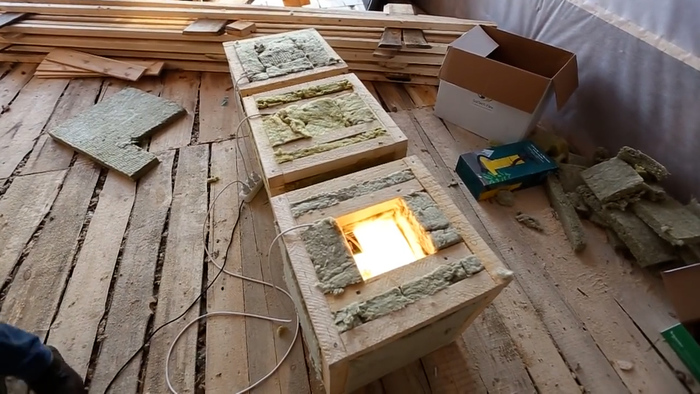 Что бы протестировать теплопроводность, мы решили сделать кубики 50х50см, утеплили 150мм
