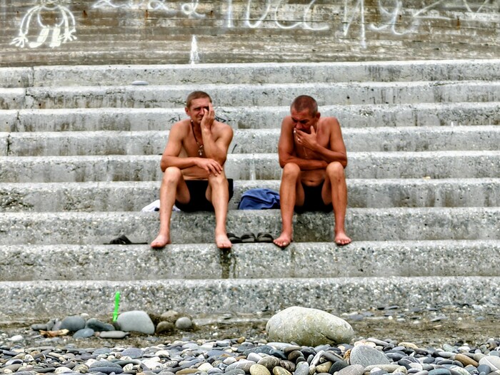 Пулемётчик заплакал. Идёт военком дальше, заглядывает в третью квартиру, там стоит беспорядок, везде бутылки с мочой, пивом и энергетиками, за столом сидит в ноутбуке человек, программу пишет.