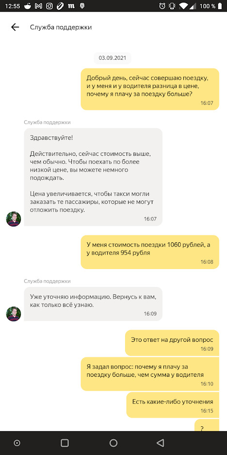 Вчера ехал на такси, была долгая поезда и разговорился с водителем и разговор ушел в стоимость поездки - решили сравнить цены в его приложении и в моем, каково было удивление, что цена отличается на 107 рублей, которые я переплатил.