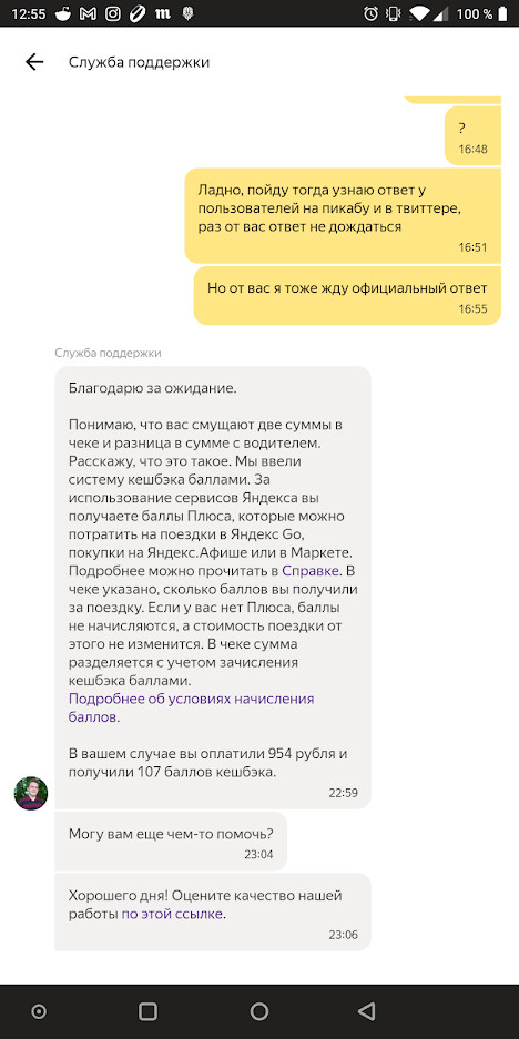 Самое интересное, что оказалось, что никакого кэшбэка нет, ты сам себе оплачиваешь бонусные баллы - шикарная тактика яндекс!! Поездка оказывается и правда стоит 954 рубля, остальные 107 рублей - это кэшбэк и я их не оплатил, а получил с барского плеча от яндекса.
