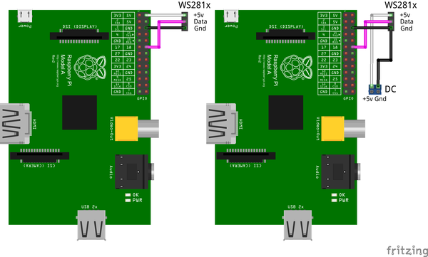 Адресную ленту можно подключить напрямую к Raspberry PI.