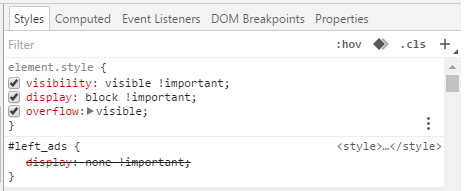К счастью, в css скрыть элемент можно множеством способов. Вот еще один из них: