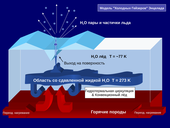 Органический материал вводится в океан гидротермальными отверстиями на дне океана Энцелада - что-то похожее на гидротермальные места, обнаруженные на дне океанов на Земле, которые являются одной из возможных сред, которые ученые исследуют для возникновения жизни на нашей собственной планете.