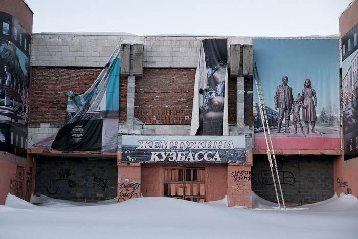 — Это бывший кинотеатр «Орбита». Наверное, год 2018-й. Потом он горел, и его снесли. В 80-е это был самый современный кинотеатр Прокопьевска, но построили его некачественно, и он быстро стал разваливаться. Какое-то время на здание вешали разные баннеры, которые срывало ветром. Вот в тот момент, когда я фотографировал, висел баннер «Жемчужина Кузбасса».