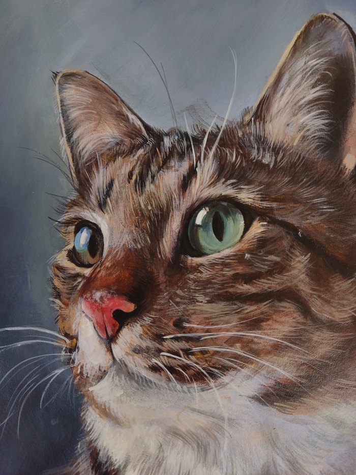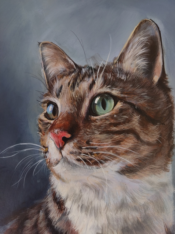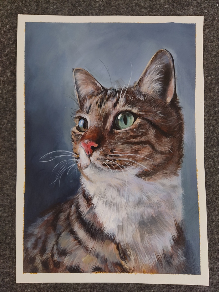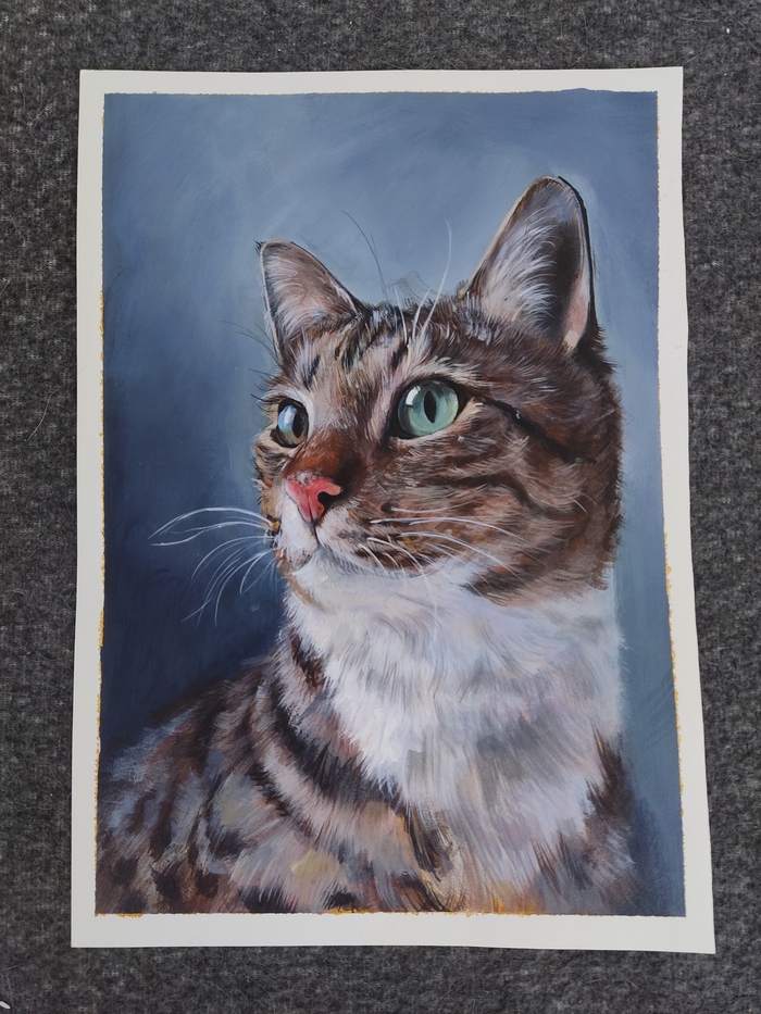 Кот Тигруля, прожил короткую, но счасливую жизнь. Акрил, бумага, А4, матовый лак☘️