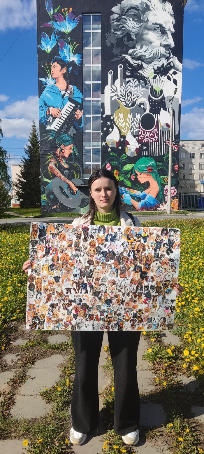 Сразу скажу, на картине 302 засранцев. Я просила своих подписчиков присылать мне своих домашних питомцев, среди которых в том числе оказались и змеи, и кони, и еноты и так далее...
