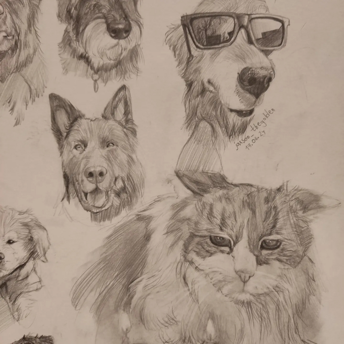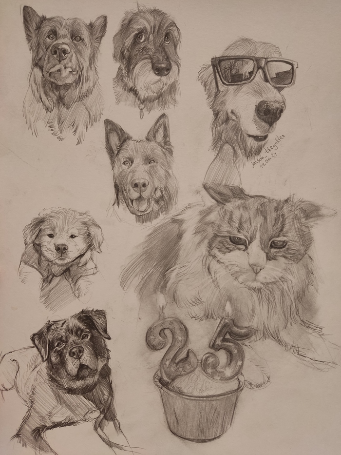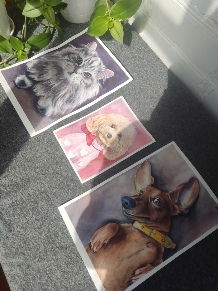 Формате А1, акриловые краски, гелевая ручка черная(подписывала питомцев)