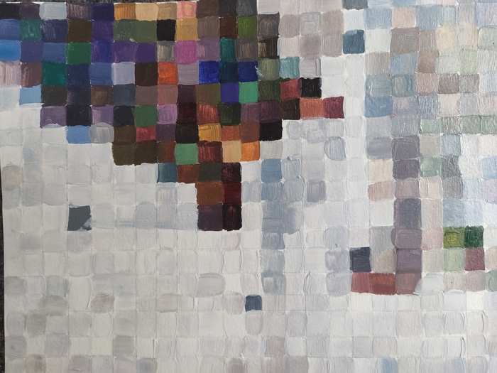 Картина была написана за месяц. За первую неделю я нарисовала 160 примерно, а потом я устала, плюс были текуще заказы, а с ростом популярности, заказов становилось только больше.