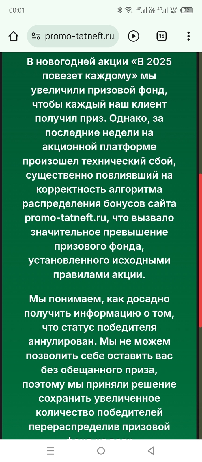 Далее появилась новая плашка на сайте, слезно извиняющаяся