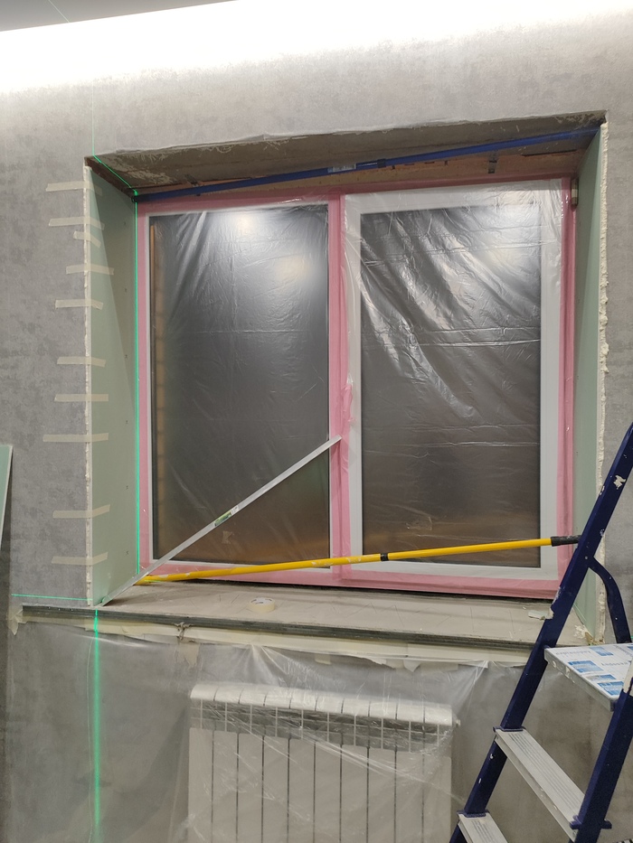 7) вот такие получились откосы и подоконник, возможно на следующем окне попробую на откосы уложить кварц винил, но это не точно)