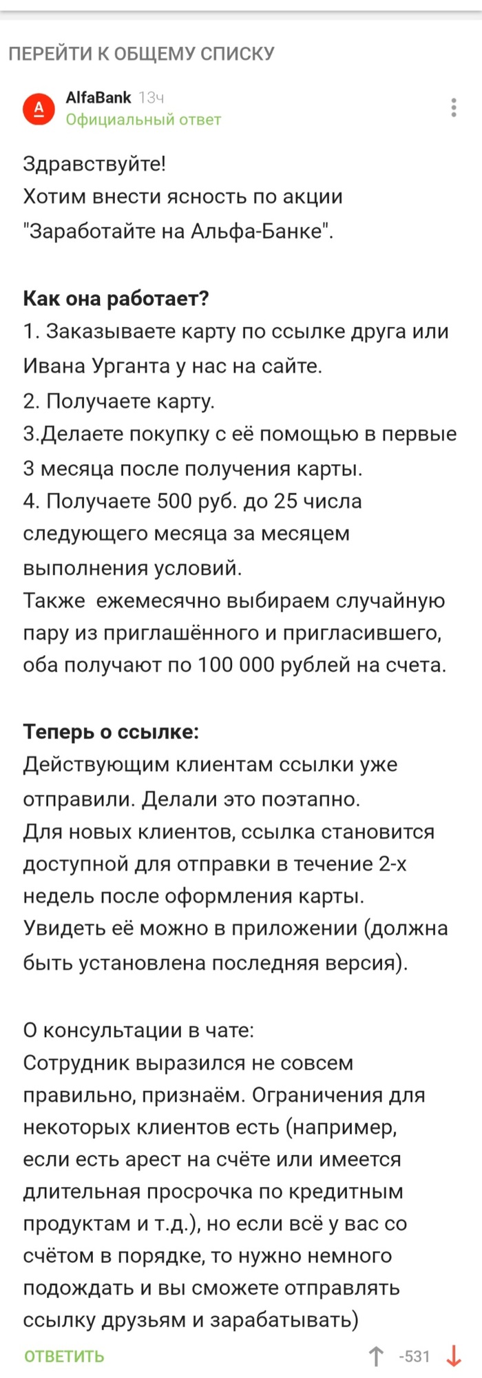 Спасибо Альфа банку за «щедрую» акцию, за которую можно получить максимум ничего