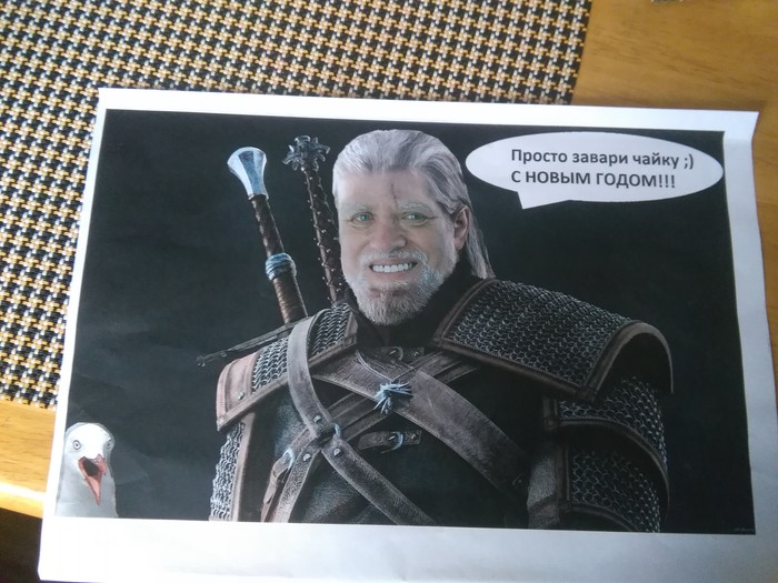 В информации о себе, я указала, что, ко всему прочему, люблю играть в комп, в том числе и в Ведьмака. И вот основная часть подарка - это черная кружка и Геральт.