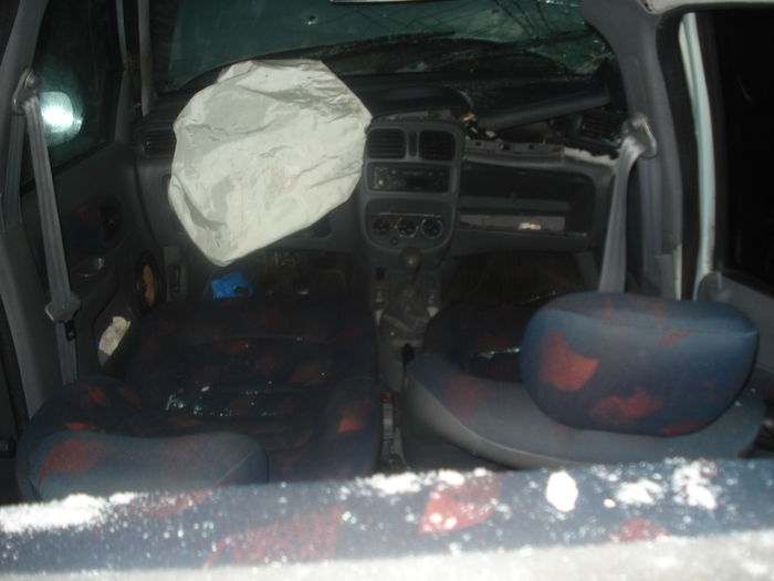В результате из травм - у меня небольшой ожег от пиропатрона подушки руля. У пассажира - синяк и ушиб левой части груди.