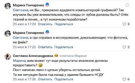 На этом фоне в местных зоозащитных пабликах появились публикации, где ставится под сомнение сам факт нападения. Некоторые активисты утверждают, что раны «бутафорские». Якобы собаки так не кусают, это больше напоминает ножевые порезы. Которые ребёнок мог нанести самостоятельно. Самое интересное, что обвиняют в случившемся… городские власти. Подобные заявления вызвали волну негодования у жителей, ведь речь идёт о безопасности детей, а не о политических спорах.