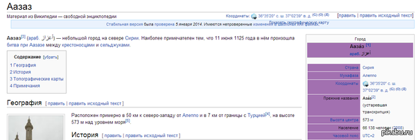 dx3756 Город в Сирии 11 лет назад Я думал, что такого города нет http://ru.wikipedia.org/wiki/Аазаз [моё] Юмор Город Сирия