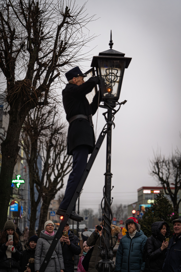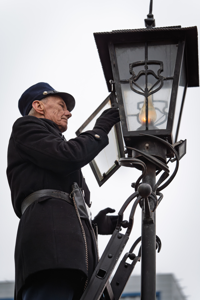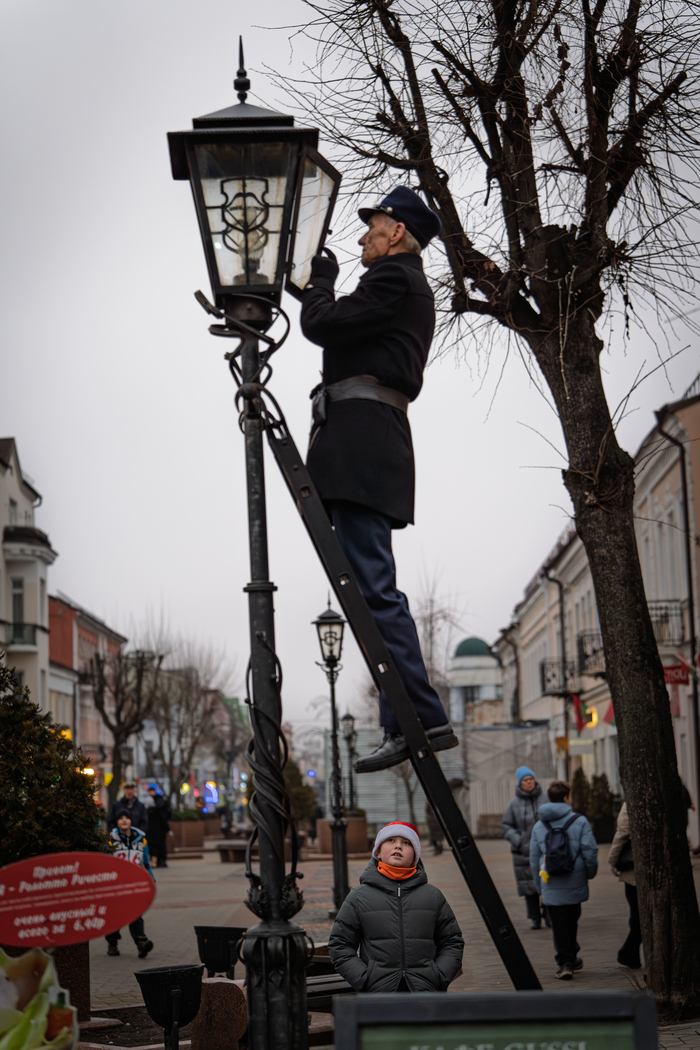В этот раз мне посчастливилось оказаться свидетелем того, как Виктор Петрович зажигал фонари в свой день рождения, 31 декабря. В назначенное время появился фонарщик со своей лестницей, и сразу же вокруг него собралась толпа. Харизматичный и обаятельный дедушка с радостью фотографировался со всеми желающими, никому не отказывая.