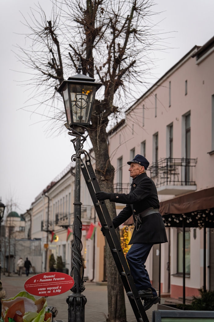 Позвольте представить вам Виктора Петровича — человека, который стал визитной карточкой города Брест и, без преувеличения, легендой, хотя сам он себя так не называет. Уже много лет он приходит на улицу Советскую незадолго до заката и зажигает фонари.