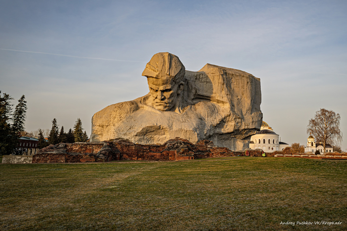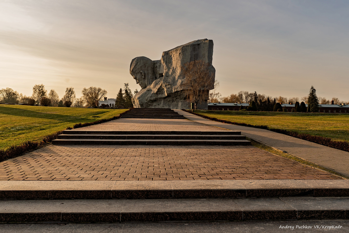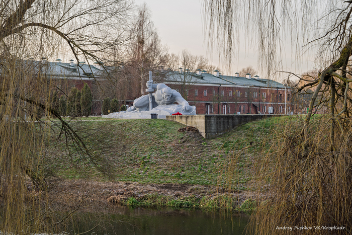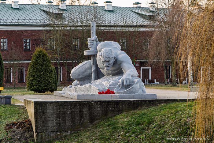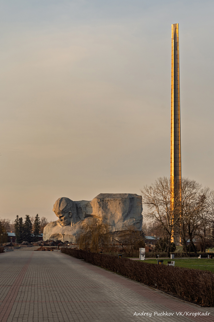 Прежде всего, хотелось отметить центральный во всех отношениях памятник Брестской крепости — Монумент «Мужество». Огромная скульптура воина, словно вырастающая из камня, впечатляет своими масштабами и мощью. Это символ несгибаемости и героизма. И действительно, черты и выражение лица дают однозначно понять, насколько героическими людьми были защитники крепости. Я сделал фотографии этой скульптуры с разных ракурсов и оцените по достоинству масштаб (Листайте карусель).