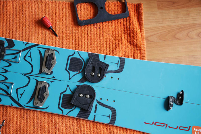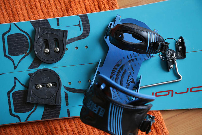 Чем хорош Voile-kit, так это тем, что используя вот эти, так называемые, монтажные пластины (идут в комплекте), можно прикрутить свои обычные сноубордические крепы. И катать на сплите.