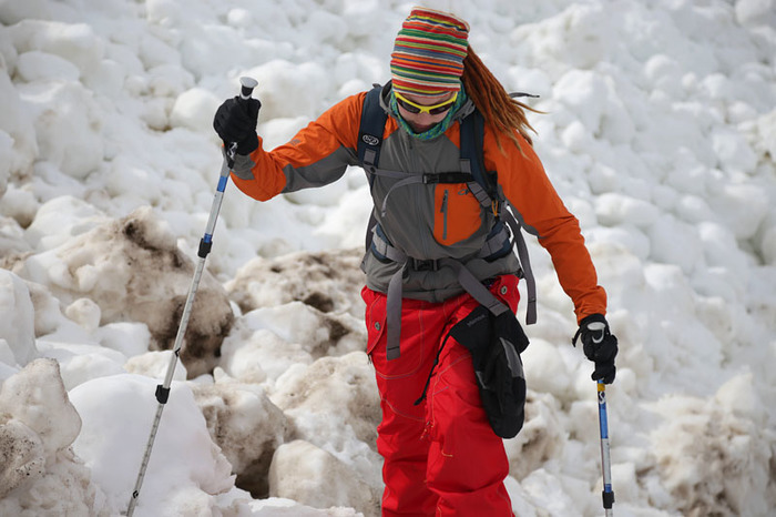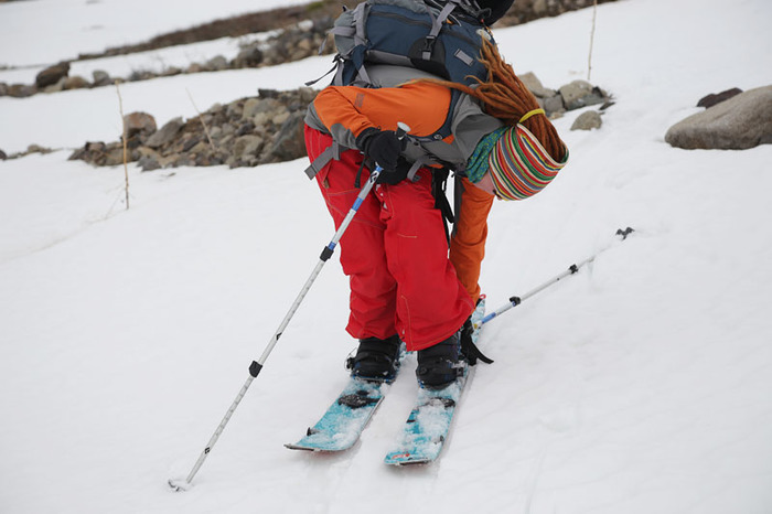 Если говорить про сложные поверхности (пересеченный рельеф, лавинные конуса и т.п.), то, в целом, разница между сплит-бордом и ски-туром не принципиальна. На сплите даже проще, он короче и более маневренный.