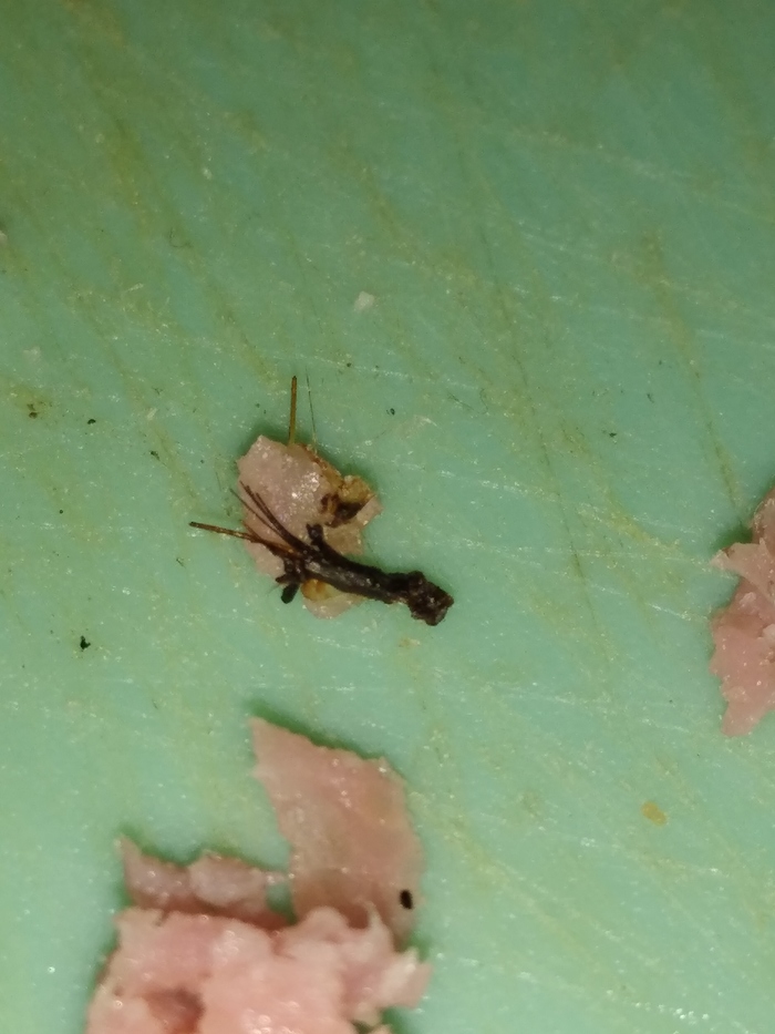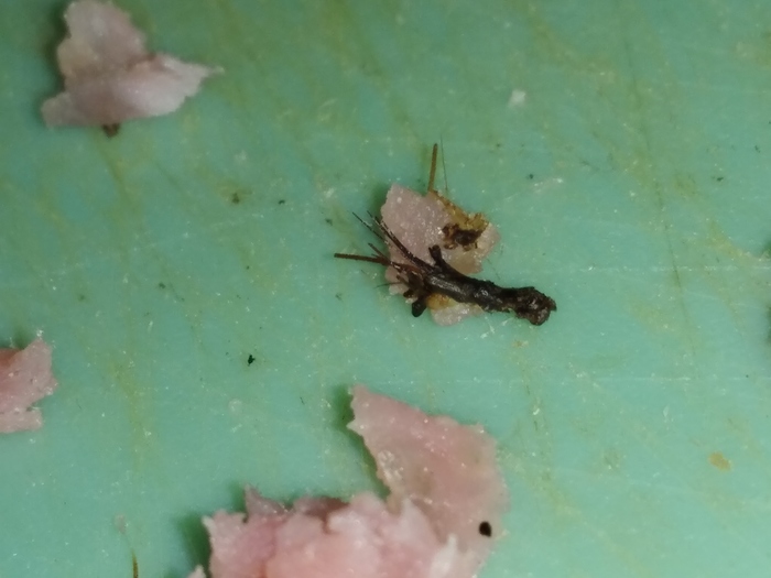 Фото прикрепляю. Если приглядеться, то в мелких обрезках колбасы видны какие-то светло-коричневые усЫки. Может и не усы, потому что по форме объект отдалëнно напоминает гвоздику. Что скажете? ..