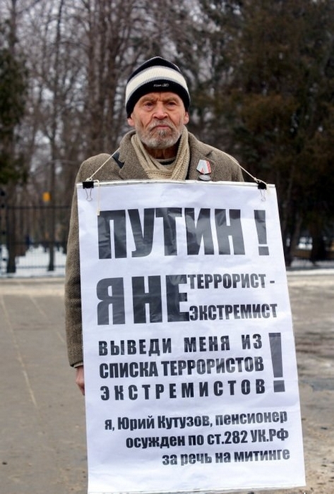 Осужденный по 282 статье УК РФ («Возбуждение ненависти либо вражды, а равно унижение человеческого достоинства») 72-летний Юрий Кутузов провел пикет у памятника Чернышевскому .Пенсионер протестовал против внесения его в список лиц, причастных к экстремистской деятельности. В список Кутузова внесла федеральная служба финансового мониторинга, о чем 28 ноября 2013 года было сообщено на официальном сайте ведомства.