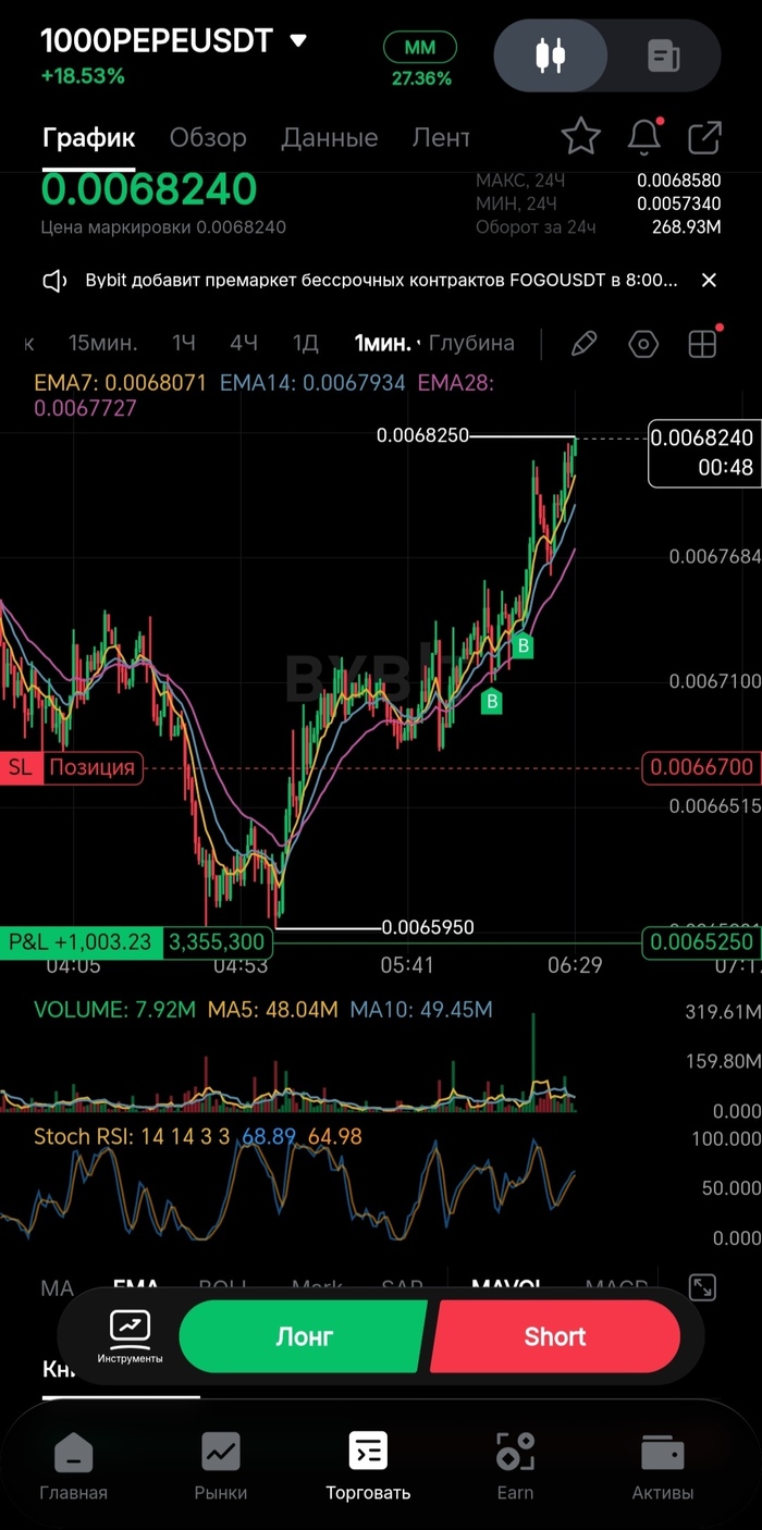 Второй мой заход был уже на 50$ и случился он пару дней назад. В моменте сделка показывала +1160$, но заскринил я только 1000. Хороший рубеж)