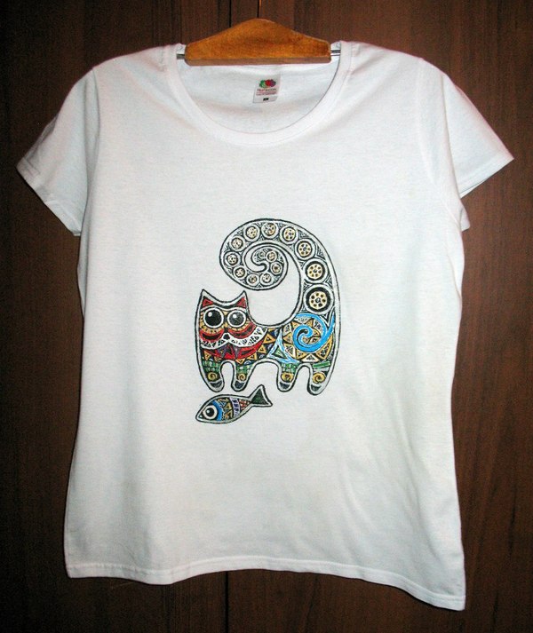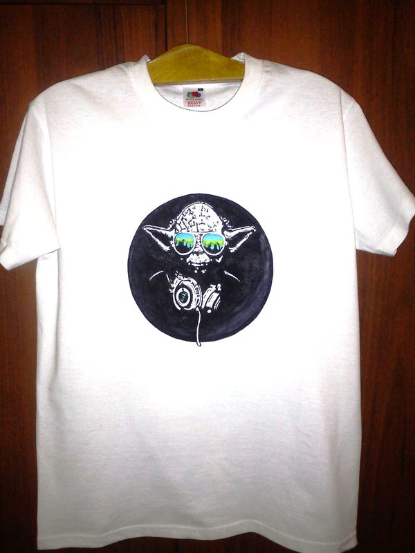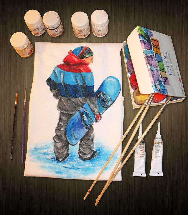Футболки х/б . Футболки рисуются специальными акриловыми красками по тканям. Этот вид красок характеризуется яркостью цветов, а главное (при нанесении рисунка на одежду это важно в первую очередь) — устойчивостью к агрессивным условиям. То есть, должным образом сделав рисунок на ткани, за него можно почти не беспокоиться. Он не отслоится, не раскрошится, не сморщится и вообще долгое время будет оставаться как новенький, потому как акрил хорошо переносит перепады температур, механические воздействия и маловосприимчив к влаге.