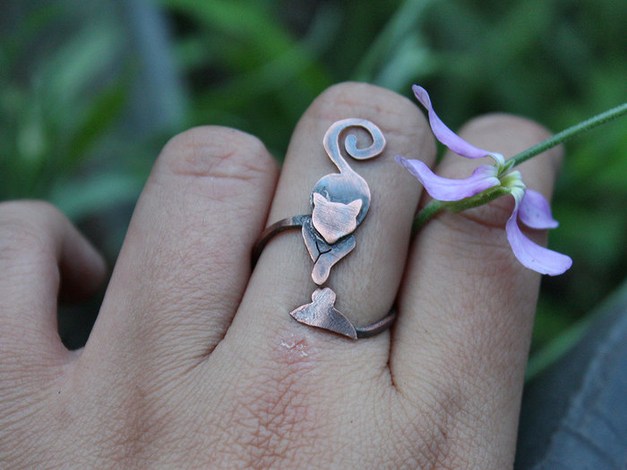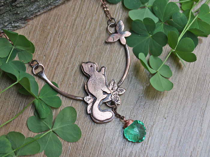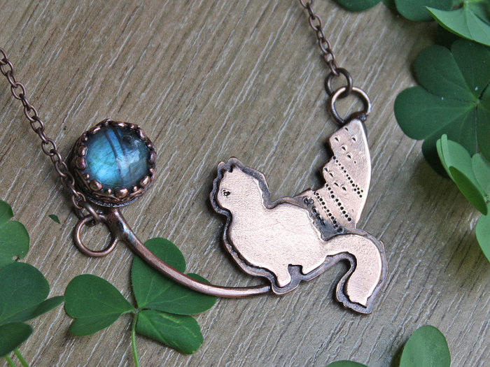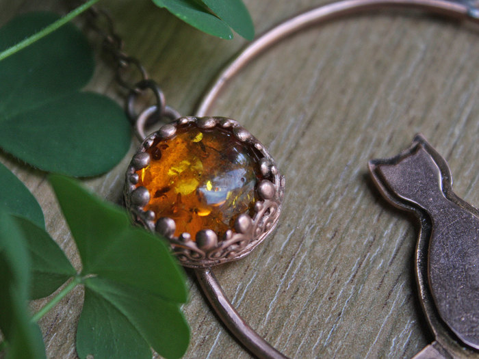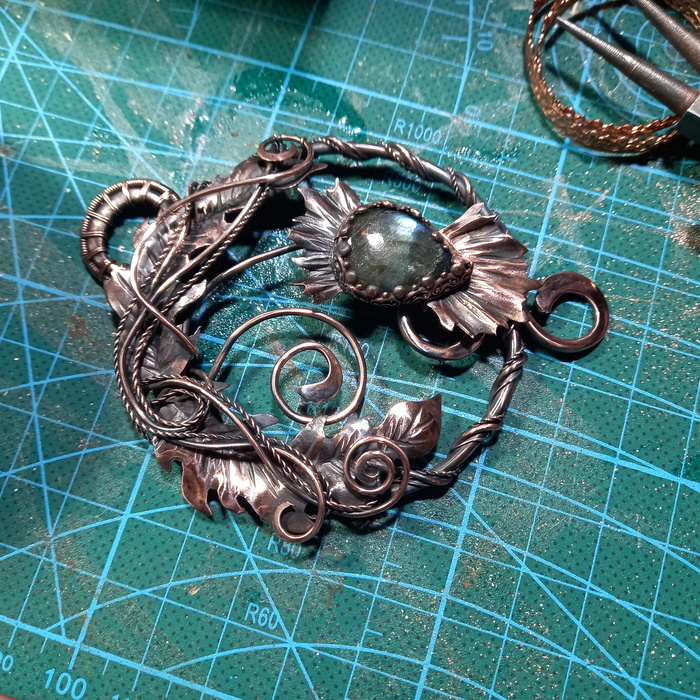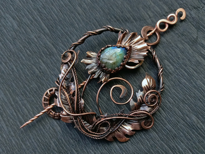 Для создания кулона "Косатка" были использованы техники wire wrapping, холодная ковка, пайка.