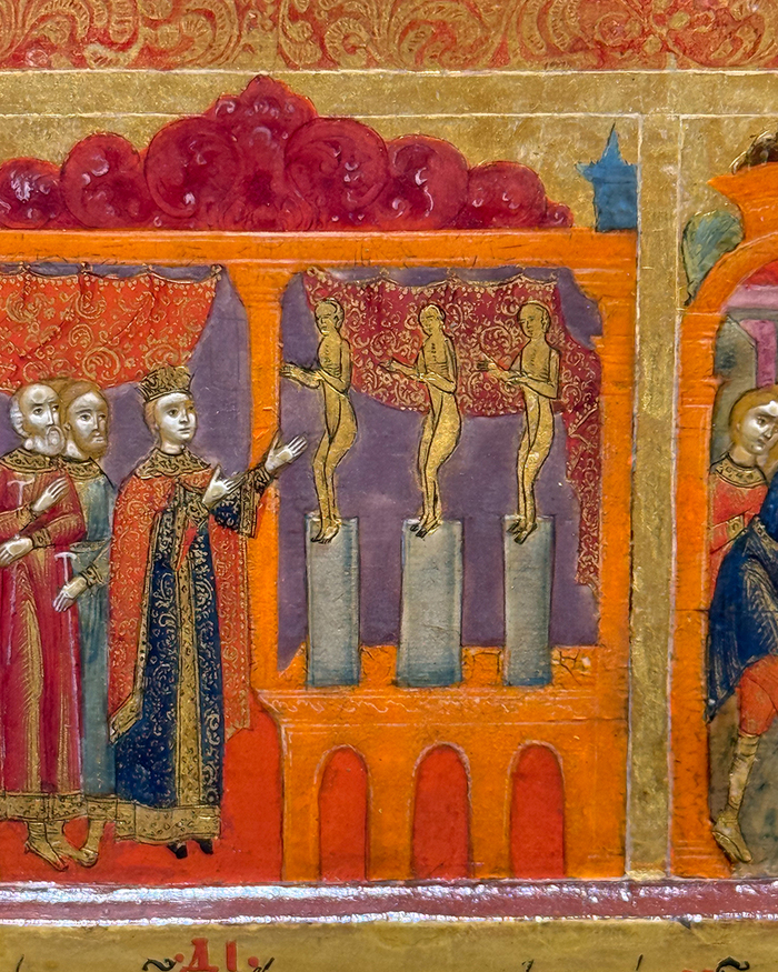 Сюжет неоднократно встречается в книжной миниатюре, но первый раз у нас на иконе.