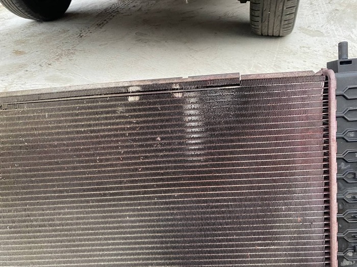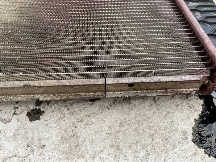Предприимчивые сервисмены заботливо надрезали конструкционные ребра радиатора, чтобы при пиковой нагрузке, радиатор лопнул. И не один надрез сделали, а целых два, чтобы наверняка. И ставка сыграла. Работу провели еще зимой, а потек он в первые жаркие дни лета)