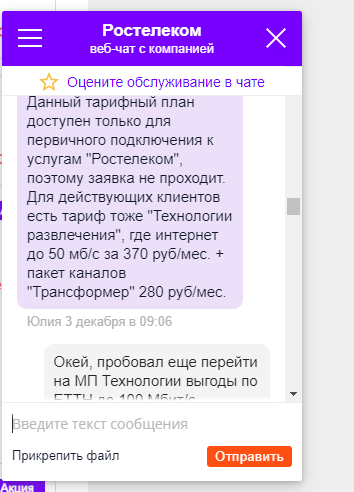 По сути, Ростелеком плевал на старых клиентов и никак не удерживает их, предлагая более выгодные тарифы. Да, все знаю схему: Позвонить сказать что уходишь, и вам выберут выгодный тариф, НО почему я должен звонить, писать и тратить нервы на то что бы спорить с операторами для предоставления нового тарифа.