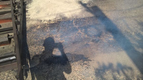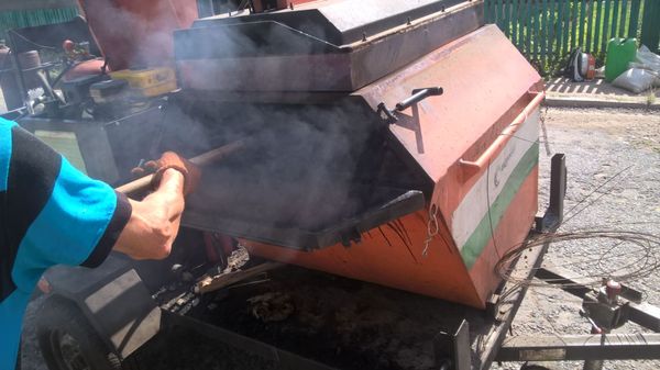 -тем временем, нагреватель греет следующий участок, а в печке "варится" старый асфальт