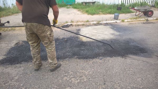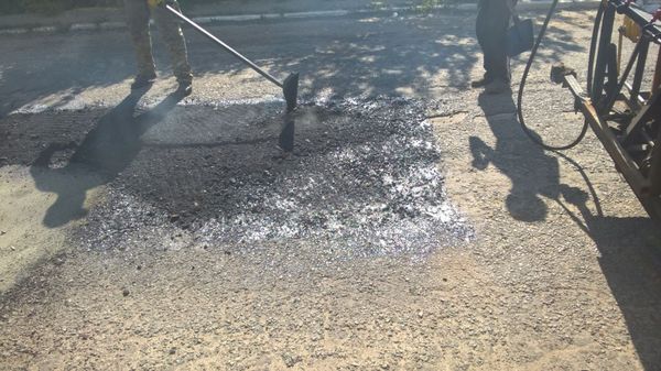 -ремонтируемый участок обогащается битумом (используется битумная эмульсия, она по консистенции почти такая как вода,поэтому ее удобно и эффективно наносить)