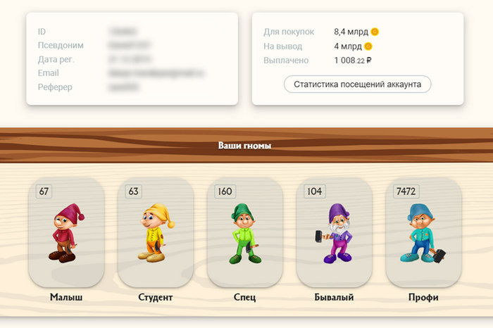Давайте же откроем эту золотую жилу. Что нам предлагает данная игра? Все проще некуда! Ты заходишь, покупаешь себе гнома (за реальные деньги, да-да), а он работает за тебя. Тебе лишь остается выводить заработанные деньги и летать в Дубаи каждые выходные.