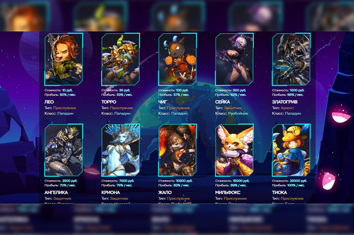 Итак, нам предлагают к приобретению аж целых 10 персонажей - Астелл -, которые будут магическим образом нам приносить деньги. Цена варьируется от 10 до 25 000р и доходностью от 50 до 100% в месяц! Купленные Астеллы будут работать вечно, как утверждает сайт. Всем бы таких работников))