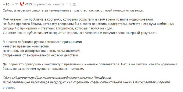 UPD. Прочитав отписку админа #comment_94070542 - ее можно интерпретировать как попытку выгородить модератора внеся изменения в правила (!)