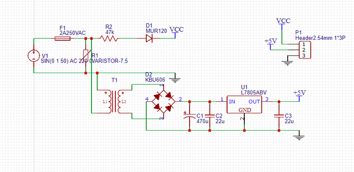 Проектируем простейший блок питания для двух напряжений, +5 и +~180