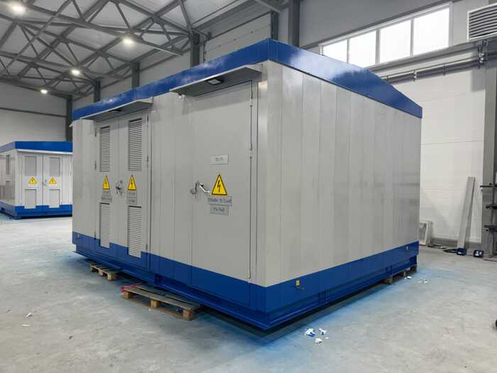На прошлой неделе мы отгрузили 3 подстанции которые полностью сделали сами. из листов железа, которые мы вырезали, согнули -отвезли на покраску и прикрутили у нас получилось достаточно симпатичные изделия.