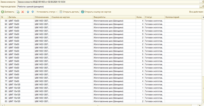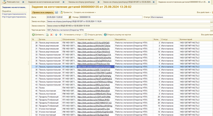 В итоге железок на производстве стало много. Основная проблема, когда лазер их разрежет понять что это за детали. к какому они заказу. Создали в 1с доп обработку для металлообработки. ввели систему кодировки с научили наш лазер сразу гравировать каждую железку.