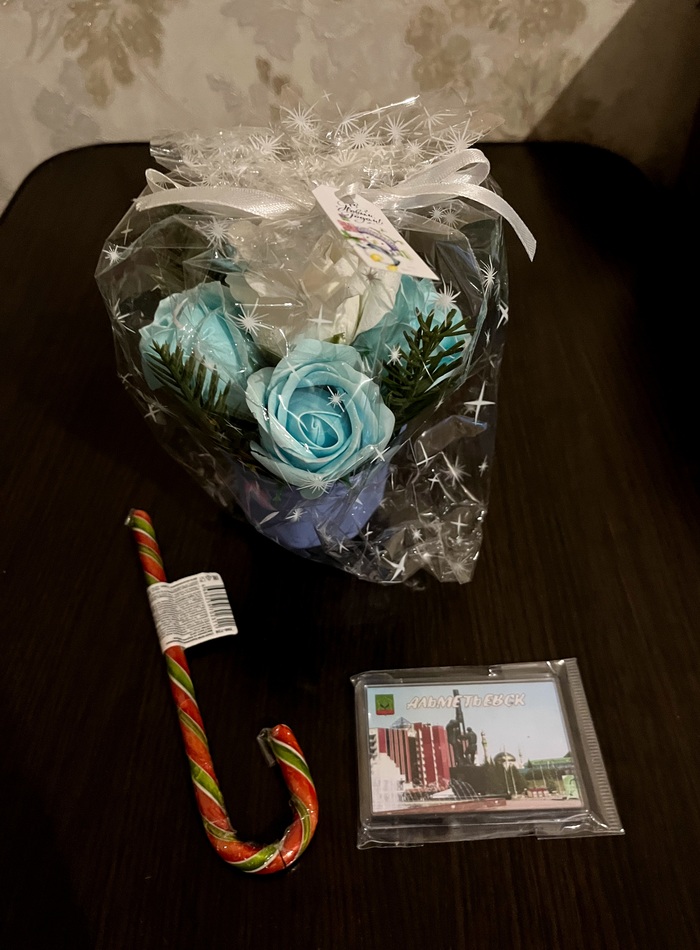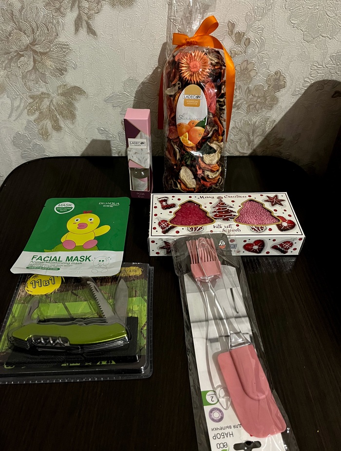 Дедушка мороз подобрал всё согласно анкете и интересам, а так же дополнил различными приятностями. Уделил внимание даже моему мужу. Писала что люблю готовить и различные ароматные процедуры по вечерам.