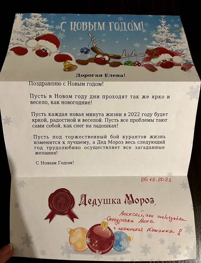 Иии...тут я словно вернулась в детство. Вечер, 31 декабря, мама готовит новогодний стол, а мы с папой смотрим Иронию судьбы. Настоящее письмо от Дедушки Мороза!!