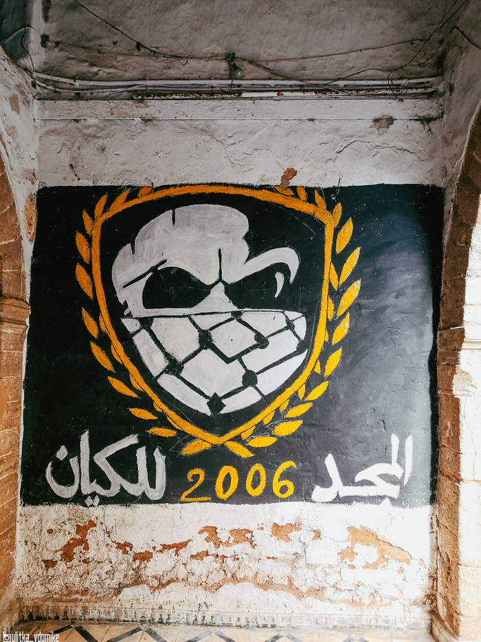 Порой попадалось интересное местное граффиити, особенно была прекрасна роза в кулаке, а рядом нож ,вонзающийся в сердце! Там как раз тусовались школьники, которые меня озадачили и мы ушуршали обратно в номера, приняв решение не гулять поздно вечером без карты по этому лабиринту, а пойти гулять рано утром. Фотографий граффити нет, но есть видео, на нём понятно как легко петлять в Фесе.