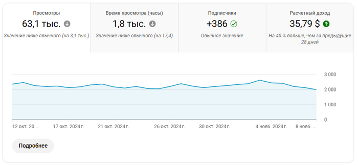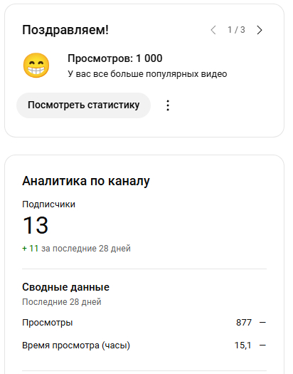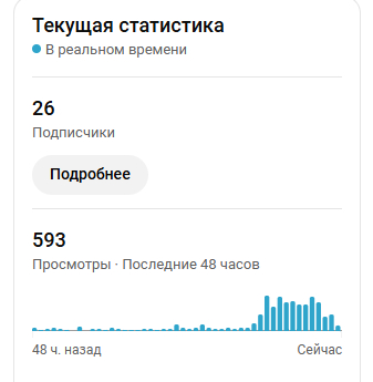 Вот думаю иногда делиться статистикой и прочими мыслями. В надеждах что через 4 месяца выйду на монетизацию. Покрайней мере так было на предыдущих 2ух каналах. Правда они были на русском 😅