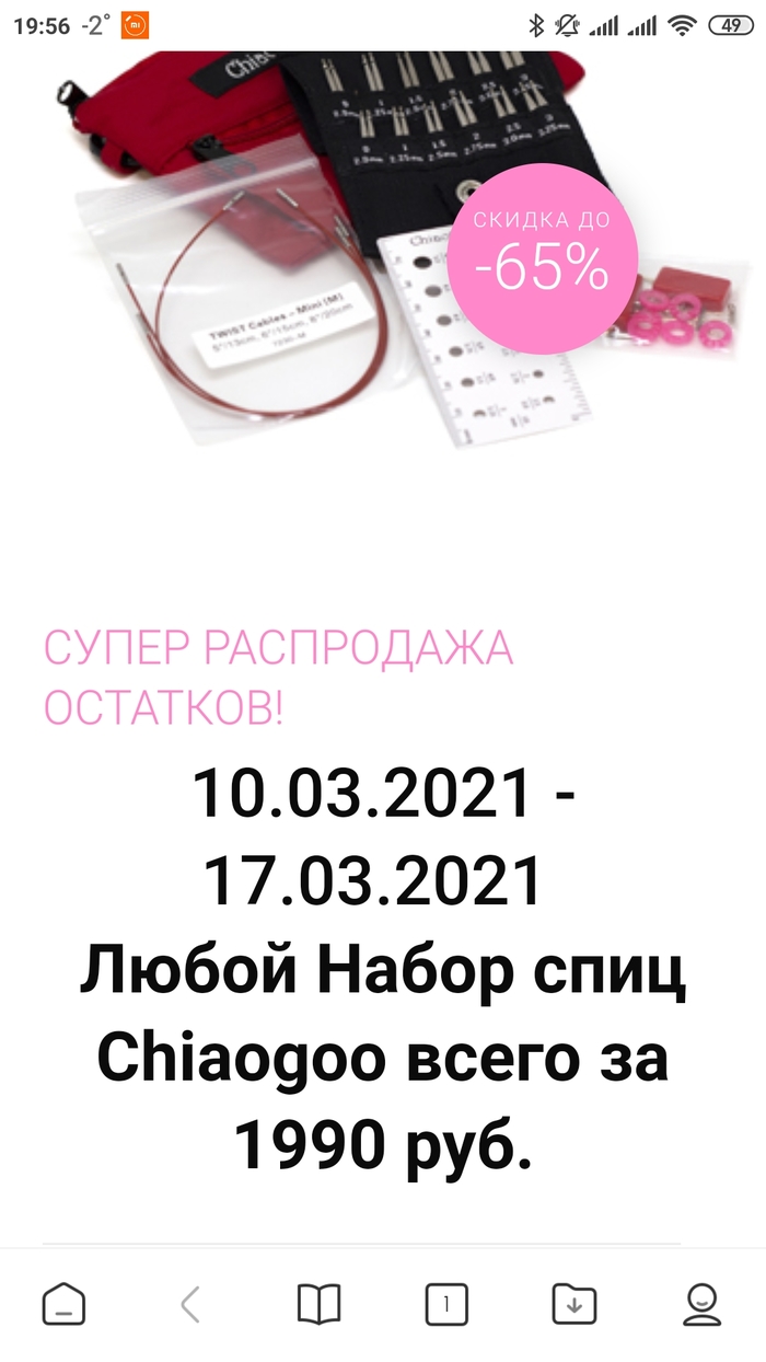 Мама у меня рукодельница, любит вязать, делает это виртуозно. Соответственно контекстная реклама постоянно подсовывает ей интернет магазины со всякими вязальными ништяками. Раньше она предпочитала покупать все в оффлайне, но не смогла пройти мимо выгодного предложения на какой-то продвинутый набор спиц вот в этом интернет магазине http://wer.busgwoom.site/