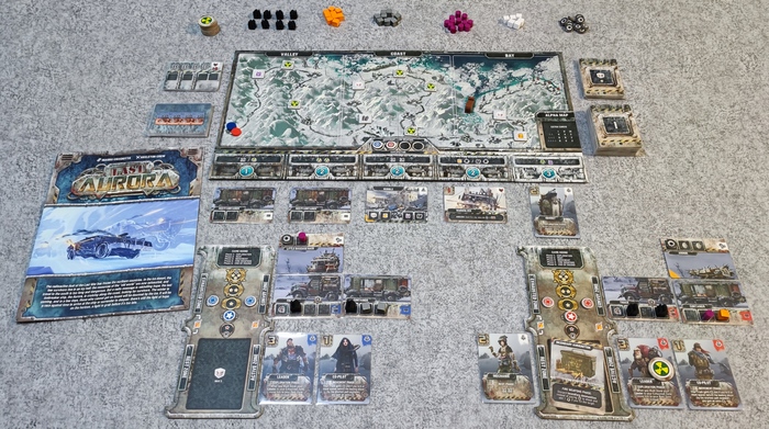 “Безумный Макс” при отрицательных температурах - одна из первых ассоциаций, возникающих при взгляде на коробку с игрой. Каждому из участников предстоит возглавить конвой, который на старте состоит из ведущего грузовика и одного прицепа. В распоряжении - базовый экипаж из двух человек и небольшой запас ресурсов.
