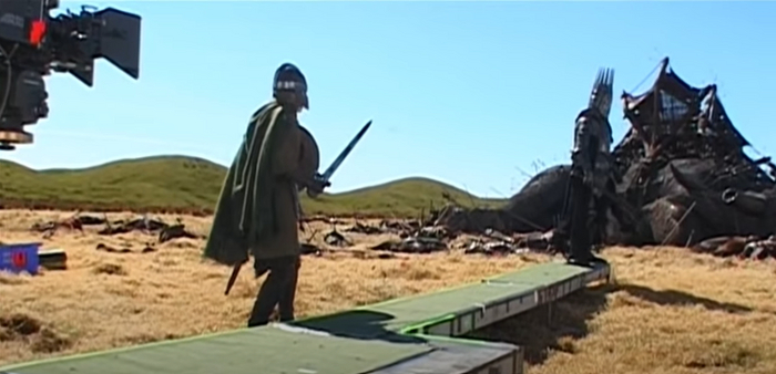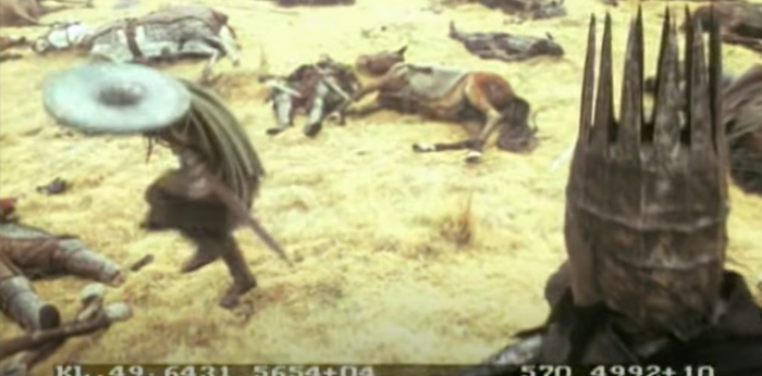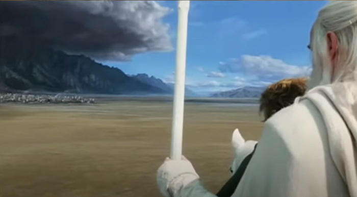 Теперь ясно почему хоббит вдруг тоже оказался на коне. В финальной версии сцена происходит после встречи с наместником, и неясно зачем Гэндальф захватил с собой полурослика в столь опасное предприятие.