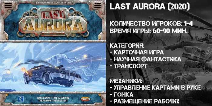 Last Aurora заинтересовала меня своим сеттингом, а также стильным оформлением. Ледяной постапокалипсис, представленный, к примеру, в игре Frostpunk или в фильме Snowpiercer. И всё это с механикой гонок - где как не здесь можно ощутить соревновательный дух! Эти три (достаточно субъективных) фактора стали для меня достаточными, чтобы проникнуться игровым процессом.