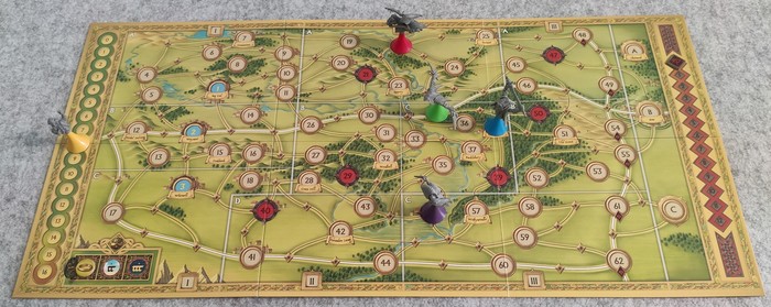 Фигурка Фродо всё так же продвигается по треку, но конкретные ходы уже не определяются игроком - они указаны на карте путешествия.